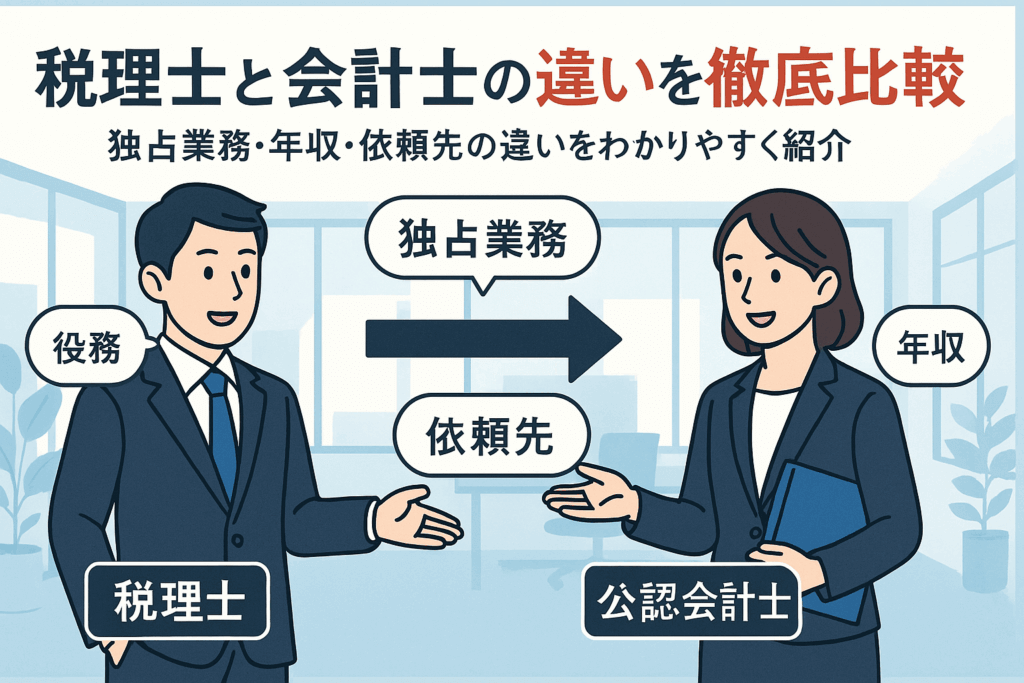 本記事では、独占業務・顧客層・学習戦略・年収レンジまでを具体例で比較し、創業期から上場準備までの“使い分け”を解説。「税務のプロ」か「監査のプロ」か—役割の違いを一言でつかんで、依頼先とキャリアの迷いを今日で終わらせましょう。